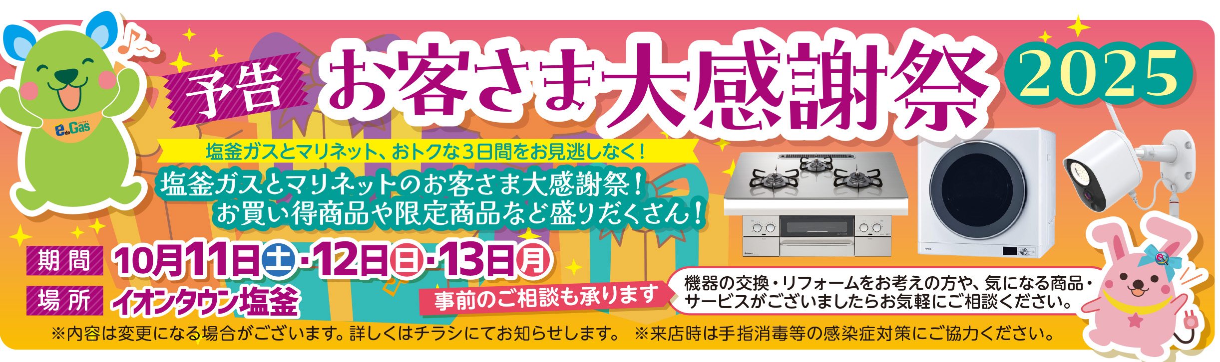 10月11日・12日・13日の3日間、「2025お客さま大感謝祭」を開催いたします。